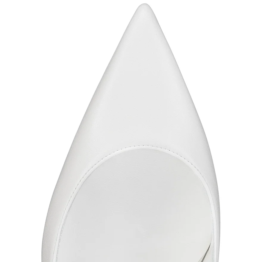 The Condora Strap Pump Has a Signature Low-Cut Vamp and a Pointed Toe Evoking a Bird’s Beak. The Open Back Showcases Maison Christian Louboutin’s Expertise with an Iconic 85 Mm Slanted Heel Revealing a Glimpse of Loubi Red. A Slender Strap Gently Encircles the Ankle. This Model is Crafted in Soft Nappa Leather in All-Over Bianco White and Finished with Tonal Lining.