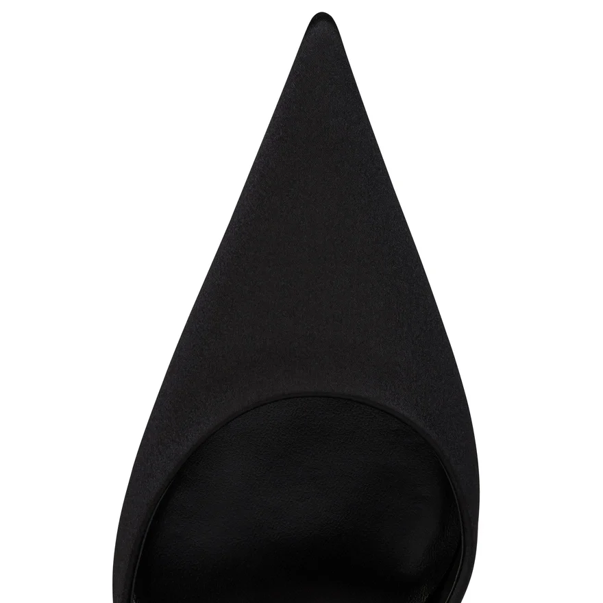 The Kate Max O Sling is a Sophisticated Slingback Pump. Featuring a Pointed Toe and a Slim Ankle Strap, It Has Striking Slender Lines. Set on a 100 Mm Stiletto Heel, This Maison Christian Louboutin Slingback is Crafted from Black Crepe Satin. This Pump is Part of the Hollywood Capsule.