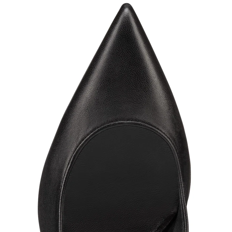 The Sporty Kate Sling Pump Crafted from Lamb Nappa Leather in Black and Featuring a Delicate 55 Mm Kitten Heel is the Embodiment of Elegance. The Closed Toe Contrasts with the Open Slingback and Fine Stitching Adorns Each Edge. Detailed with the Iconic Maison Christian Louboutin Initials and Embellished with a Daring Loubi Red Sole, This Slingback Makes a Statement.
