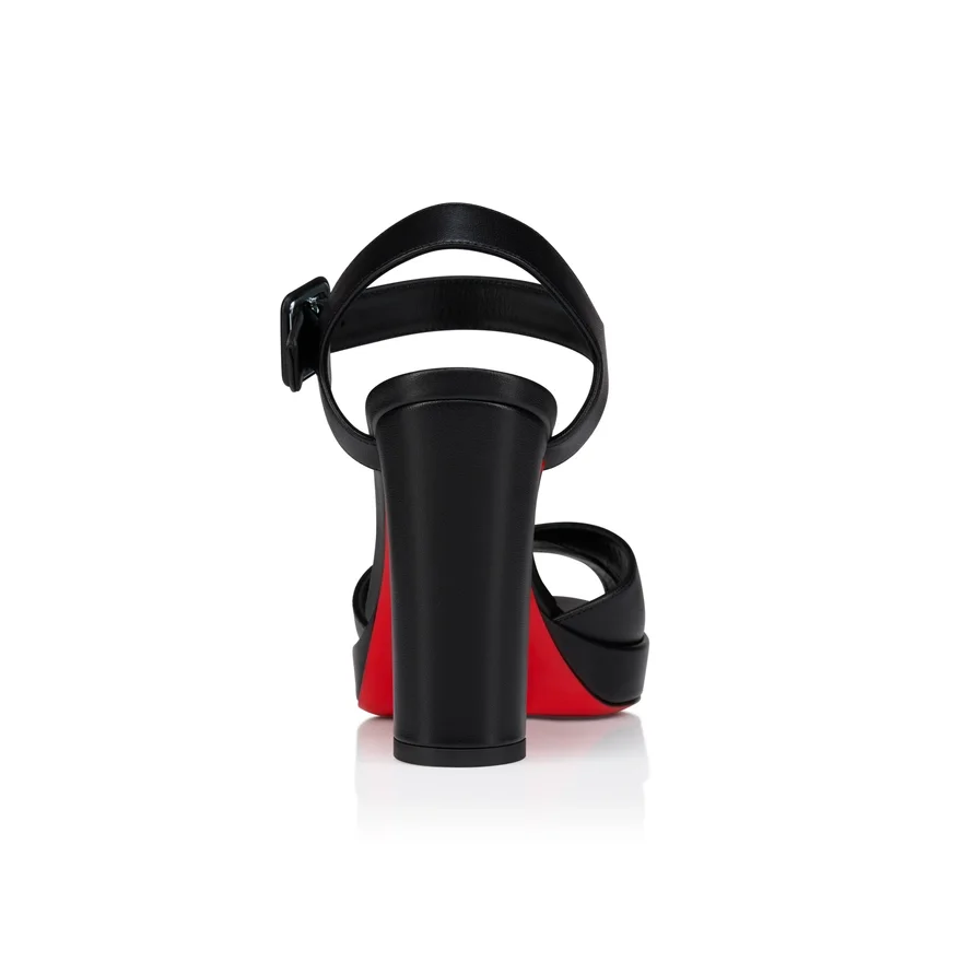 With Its 100 Mm Block Heel and 15 Mm Platform, Maison Christian Louboutin’s Cora Sandal is Effortlessly Elegant for Day-To-Evening Wear. It Features Wide Cross-Over Straps Revealing a Subtle Glimpse of the Foot Beneath and a Similarly Wide Ankle Strap That Fastens with a Tonal Buckle. This Model is Crafted in All-Over Black Lamb Nappa Leather.