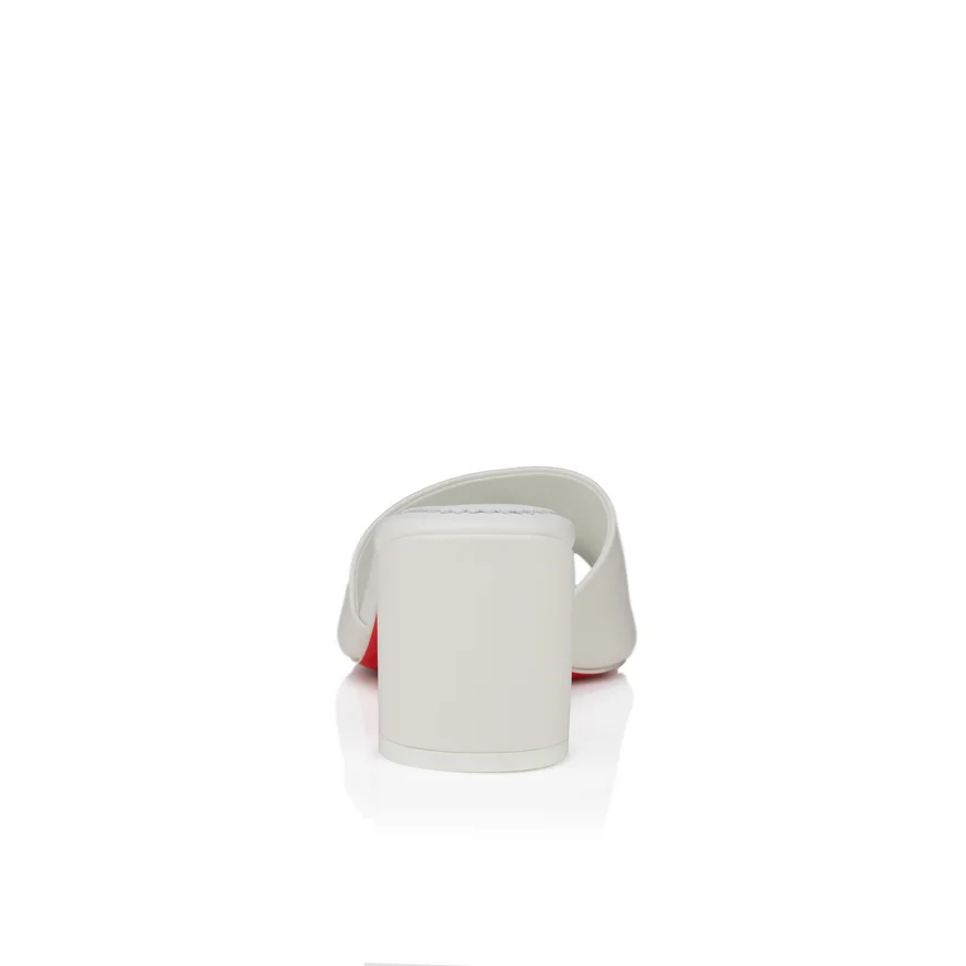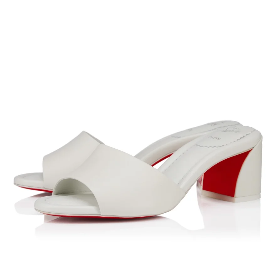 The Timeless Jane Mule Features a Square, Angled Heel in an Easy-To-Wear 55 Mm Height. This Maison Christian Louboutin Slip-On Sandal is Crafted in All-Over Bianco White Soft Leather with Tonal Lining. The Clean, Slender Strap Elegantly Dresses the Foot for a Simple Yet Sophisticated Look.