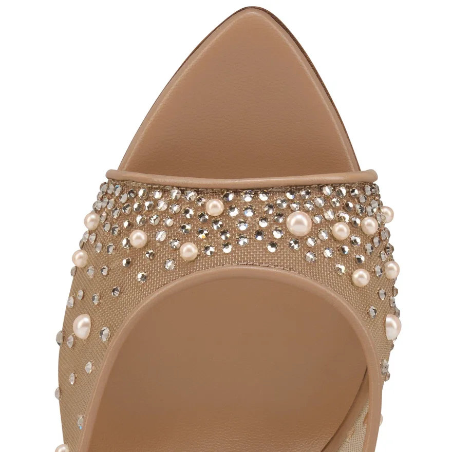 The Miss Z Mule Sandal Has a Sophisticated, Tapered Silhouette. Set on a 100 Mm Stiletto Heel That Reveals the Loubi Red of the Iconic Sole, and Featuring a Padded Insole, This Maison Christian Louboutin Shoe is Crafted from Blush Beige Mesh and Lamb Nappa Leather. The Mesh Strap is Adorned with Hand-Placed Signature Tonal Strass and Pearls, Creating a Gradient Pattern Rising from the Toe to the Heel. This Model Features an ‘Everlasting Red’ Sole, Thanks to an Innovative Coating Technique That Ensures Resistance and Lasting Vibrancy for Our Signature Louboutin Red.