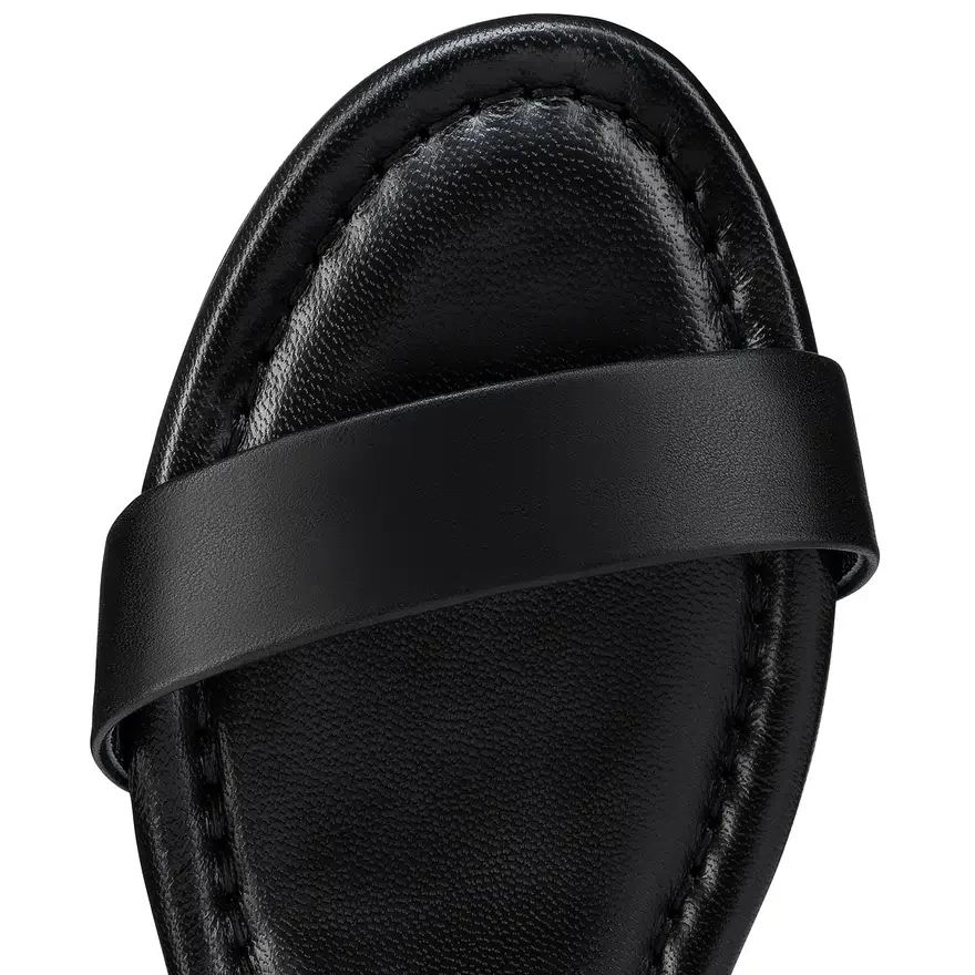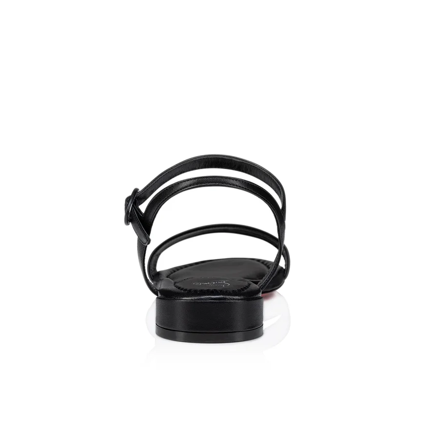 The Sweet Jane Sandal Features Sleek Lines. This Summer Style is Crafted in Black Lamb Nappa Leather. It Features Two Elasticated Straps with Tonal Buckles for an Elegant Finish. The Slender Strap Enhances the Foot, Showcasing Maison Christian Louboutin’s Sophistication.