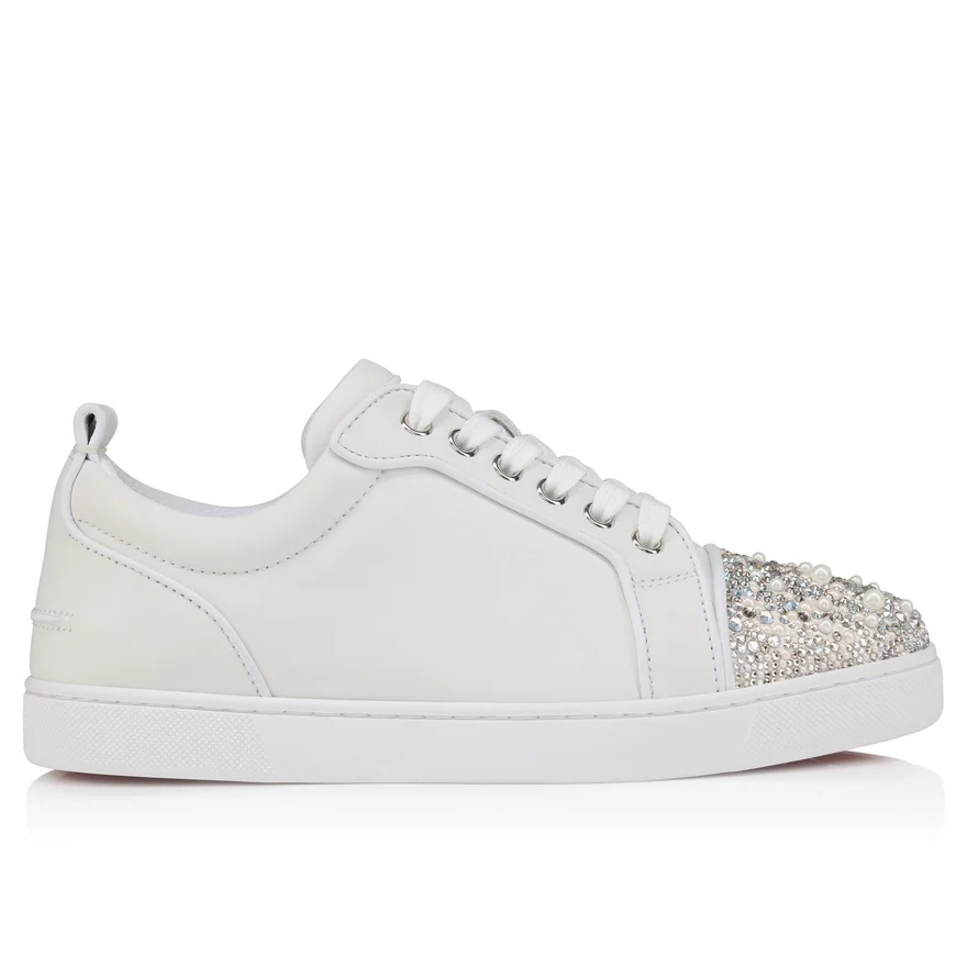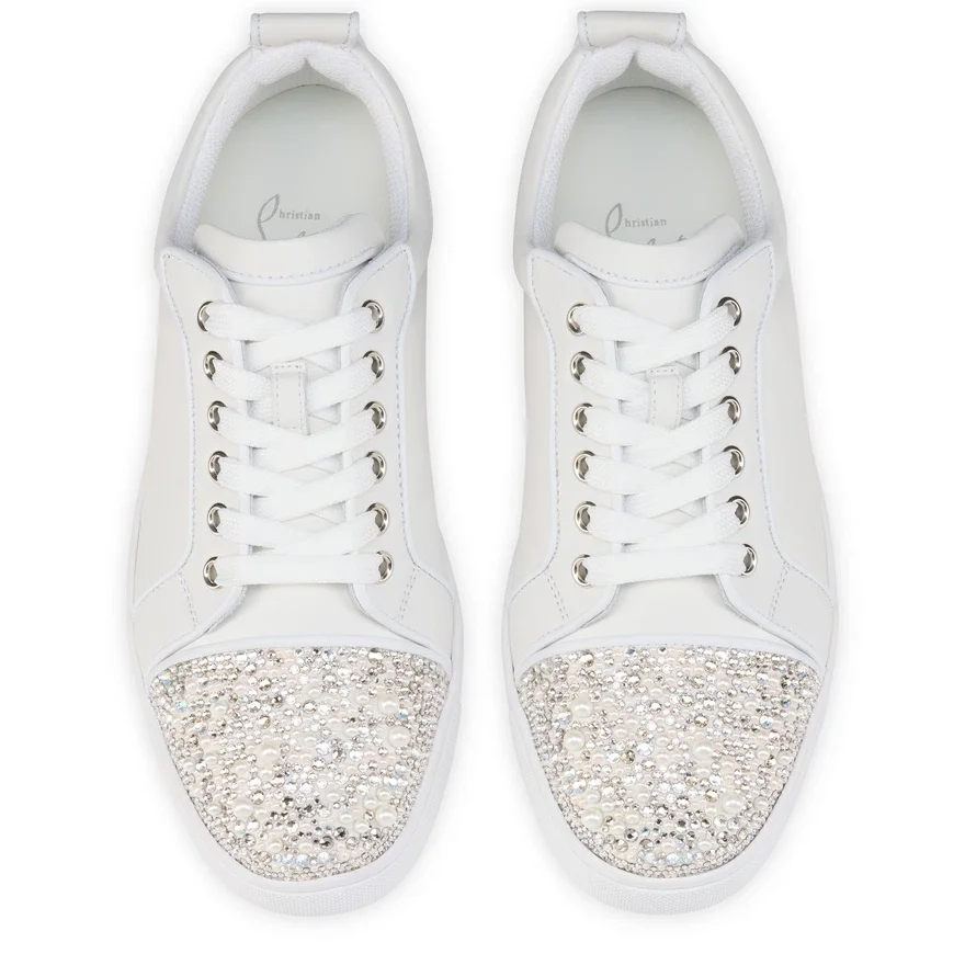 Taking Inspiration from the Tennis Shoes of the 1980S, the Louis Junior Perla Effortlessly Blends Retro Chic with Audacious Modern Elements. A Master of Reinvention, This Sneaker Takes on New Textures and Fabrics Each Season. This More Classic Model Features All-White Design, with Both Calfskin Leather and Crepe Satin Creating a Stunning Contrast. This Sneaker is Adorned with an Array of Shimmering Pearls.