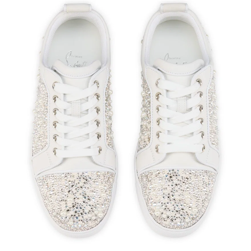 The Louiseperla is a Low-Top Sneaker with a Timeless Silhouette, Evoking the Tennis Shoes of the 1980S While Lending a Striking Contemporary Twist. Its Various Sections Are Adorned with Maison Christian Louboutin’s Signature Strass and Hand-Sewn Pearls. A Modern Sneaker with a Heel Tab and Delicate Topstitching. It is Crafted from White Crepe Satin with Calf Leather and Lamb Nappa Leather for a More Supple Feel.
